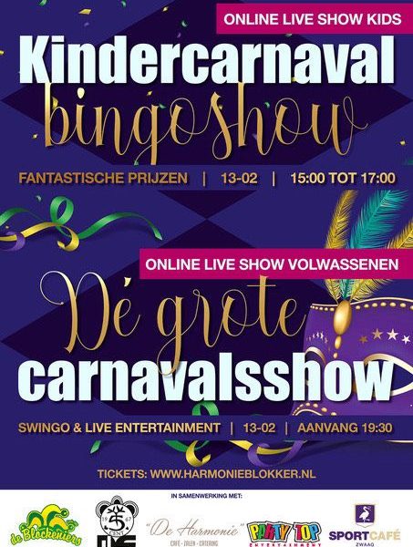 BLOKKER - Carnavalsverenigingen de Leste Stuyver en de Blockeniers organiseren in samenwerking met café de Harmonie en sportcafé Zwaag een fantastische interactieve carnavalsshow.