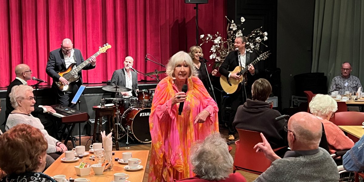 Dit was op 22 februari jl. Woensdagmiddag. Eindelijk was het zover dat Willeke Alberti haar intrede maakte in De Brink in Obdam samen met haar band, zangeres en geluidstechnici. Gekleed in een opvallende roze jurk zwierde zij door de zaal en zong de mensen toe. De sfeer zat er meteen in. Er werd geklapt en meegezongen.
