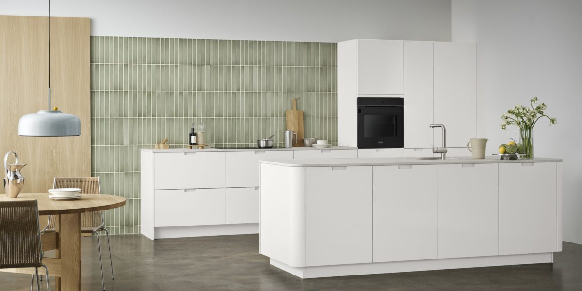 “Graag laten wij u ook kennismaken met onze nieuwe Evento-keuken, het toppunt van Deens design, waar eenvoud, tijdloosheid en functionaliteit samenkomen,” vertelt Dennis Robert. “Evento maakt een knipoog naar hedendaagse trends en brengt zo de schoonheid van organische architectuur naar de keuken, met mooie gebogen hoeken. Dit verzacht de geometrie van de ruimte en geeft een vloeiende en natuurlijke esthetiek. Het vindt zijn weerklank in het huidige streven naar organische keukendesigns. De afgeronde randen zijn meer dan een ontwerpkeuze: ze vormen de sleutel tot een levensstijl die waarde hecht aan harmonie en stroming. Ze stralen rust uit. Met Evento wordt je keuken niet alleen een plek om te koken, maar ook een ruimte die de organische rondingen van de natuur weerspiegelt en een serene en uitnodigende sfeer schept.