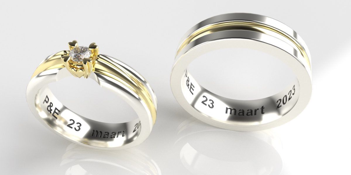 Mocht de klant niets kunnen vinden in de bestaande collectie, dan kan er kosteloos een 3-D ontwerp worden gemaakt, waarin de wensen van de klant zijn verwerkt. Dit ontwerp geeft een zeer realistisch beeld van de ringen, die na goedkeuring in eigen atelier voor u kunnen worden gemaakt. In verband met de hoge goudprijs, kan er ook gebruik worden gemaakt van het goud van de klant zelf.