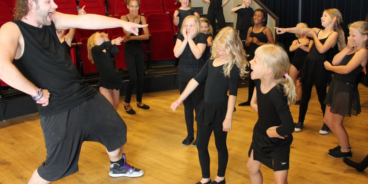 De repetities en de eindvoorstelling vinden plaats op de derde verdieping in de theaterzaal van cultureel centrum “De Drom”. Theater Academie Enkhuizen heeft hier ook haar wekelijkse musical lessen. Dit alles onder leiding van de ervaren musical, – en dansdocent Menno Leemhuis, die zijn sporen in het vak ruim verdiend heeft. Niet alleen toerde hij zo’n 10 jaar in grote musicalproducties, hij was ook verantwoordelijk voor de choreografieën van diverse shows in binnen, – en buitenland. In 2018 won hij diverse prijzen waaronder een ‘Dutch Dance Award’ voor beste choreograaf en hij geeft les bij het Nationaal Jeugd Musical Theater in Amsterdam. Een school met een vooropleiding voor jong musicaltalent. “Voor de reguliere lessen van Theater Academie Enkhuizen kunnen leerlingen zich ook weer aanmelden’, zegt Menno, ‘We zijn een kleine intieme school, een fijne sociale omgeving waarin elk kind zich prettig en veilig voelt en zo alle aandacht krijgt die hij of zij verdient zodat zij zich het beste in hun eigen tempo kunnen ontwikkelen’, legt hij uit. ‘Ook de zaal is top!