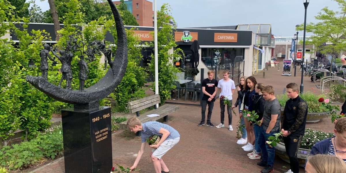 GROOTEBROEK - Vrijdag 20 mei hebben leerlingen van het Clusius College in Grootebroek bloemen gelegd bij het oorlogsmonument in Bovenkarspel.