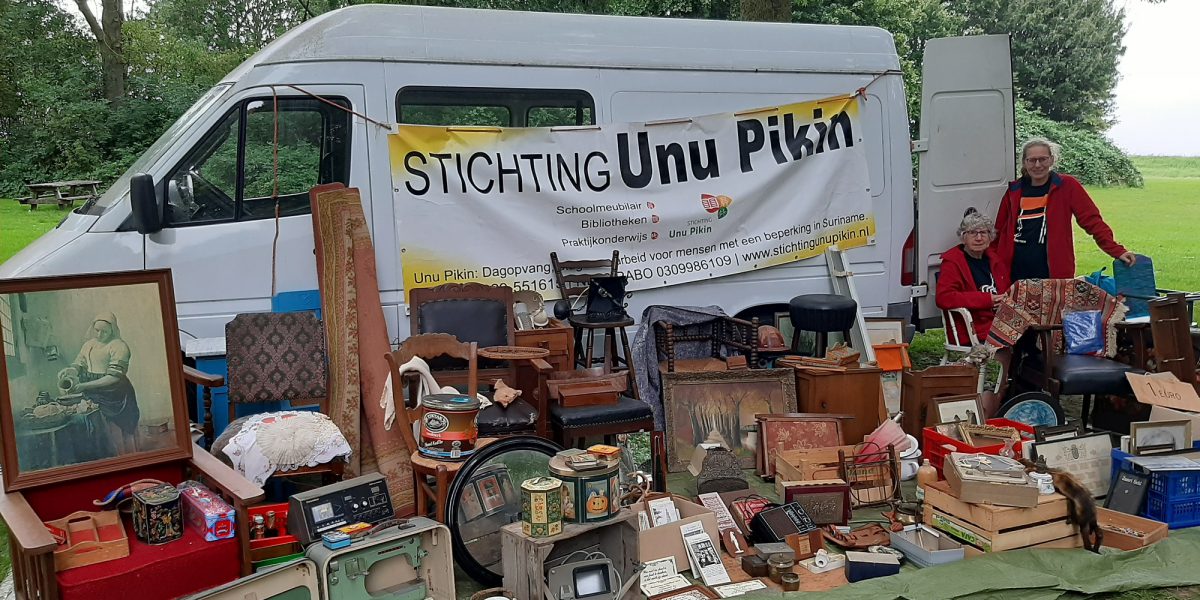 De Hoornse stichting Unu Pikin ondersteunt een sociale werkplaats voor mensen met een lichamelijke, verstandelijke of visuele beperking in Suriname. In de werkplaats wordt meubilair gemaakt voor schoolbibliotheken en worden fietsen gerepareerd. Vanuit Nederland worden al jaren boeken en fietsen naar Suriname opgestuurd. Mensen bieden ook andere spullen aan, die niet allemaal geschikt zijn voor Suriname, of waarvan het opsturen te kostbaar is. Deze goederen worden nu verkocht.
